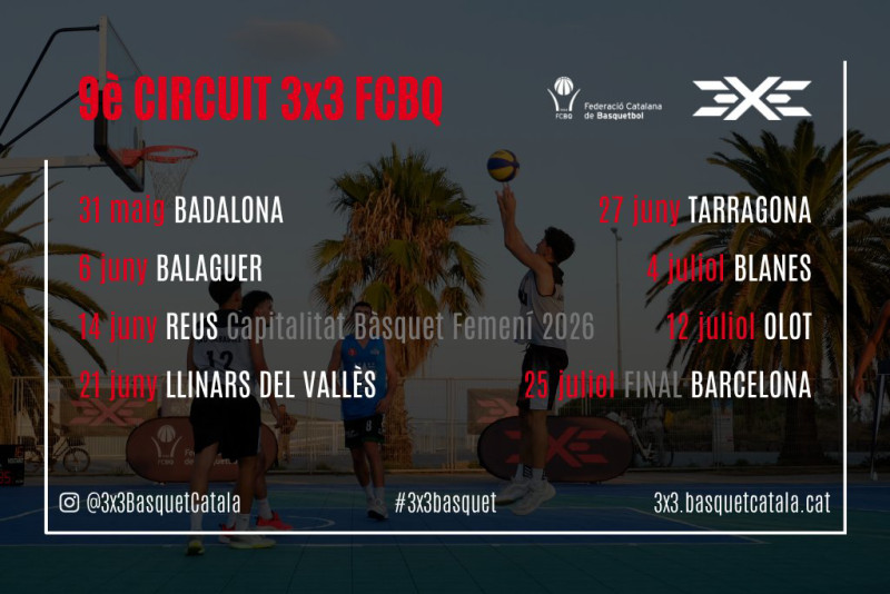 Així doncs, el 9è Circuit Català de 3×3 arriba amb forces renovades i visitarà 8 ciutats reforçant el protagonisme per a totes les edats amb les corresponents millores anuals. Enguany i com a novetat, farà parada a una nova ciutat com Reus en el marc de la seva Capitalitat del Bàsquet Femení 2026 i també a Olot, dins el marc dels actes per la Capitalitat de Ciutat Europea de l’Esport 2026 per Aces.